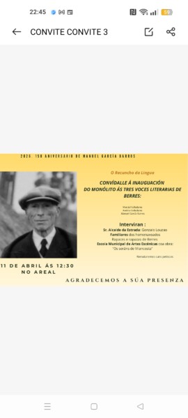 A Asociación O recuncho da Lingua de Berres coa colaboración co Concello da Estrada celebrará o vindeiro sábado 11 de abril, ás 12:30 horas, un acto emotivo, cultural e histórico: a inauguración dun monólito dedicado aos escritores de Berres.
