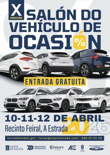 Salón do Vehículo de Ocasión no Recinto Feiral da Estrada con coches seminuevos, quilometro cero e de ocasión: eléctricos, híbridos, diesel e gasolina.